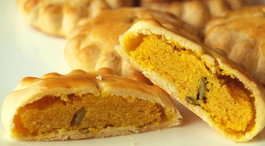 ほっこりかぼちゃ餡をサクサクのパイ生地で包みました。